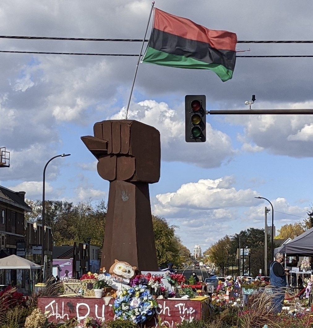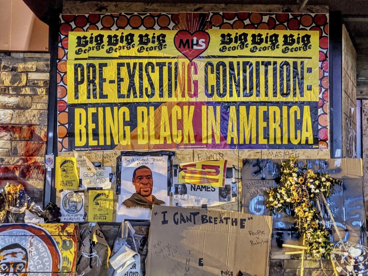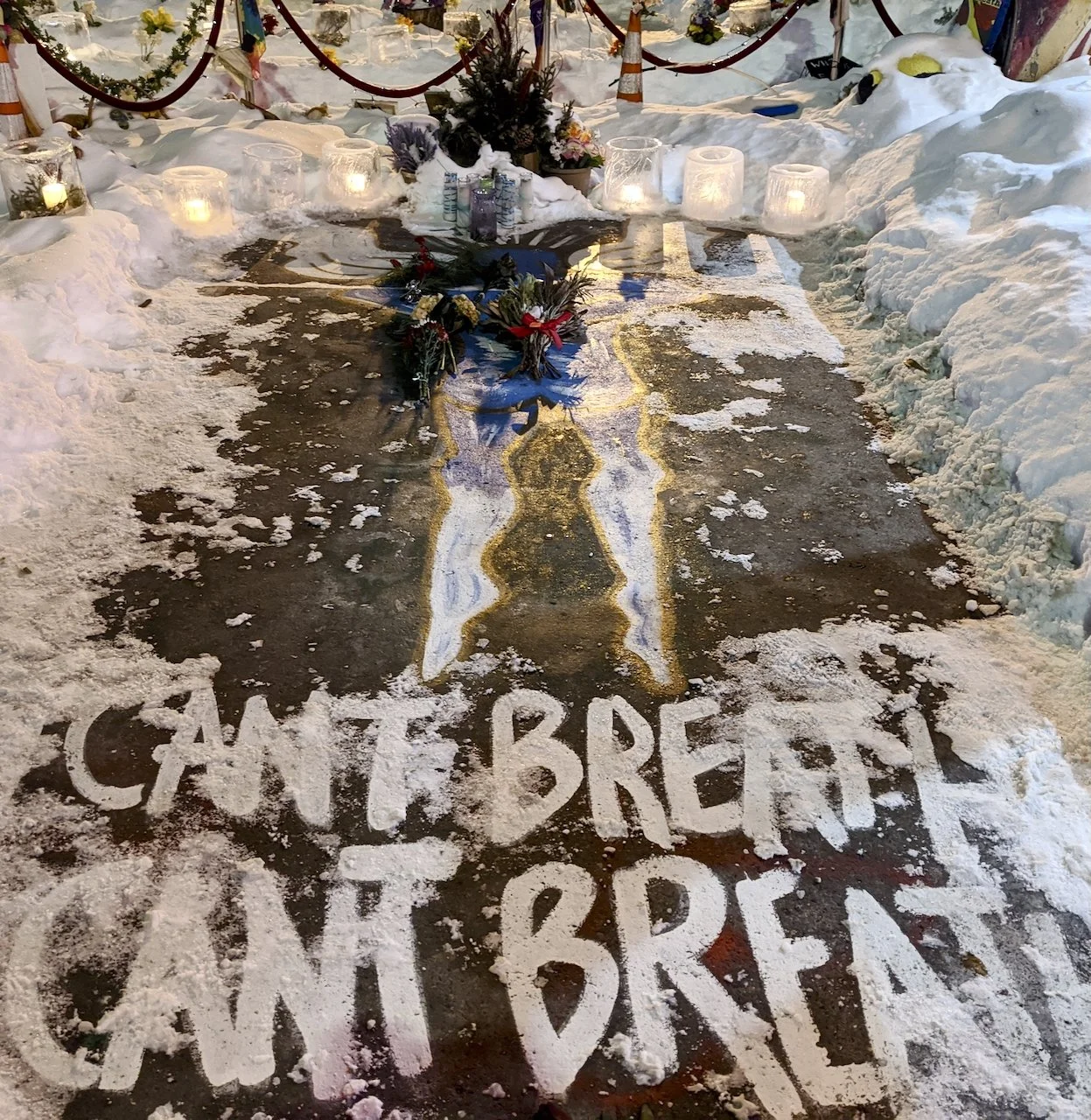 On May 25th, 2020, George Perry Floyd Jr., a Black man from Minneapolis, was murdered by Derek Chauvin, a White police officer. The killing, captured on video, drew the wide attention of the nation and the world. 38th and Chicago where George was killed has become a memorial, a sacred site - George Floyd Square. It is a focal point for demonstrations, protest, community gatherings, personal expression, and a call for racial justice. Thousands of people have visited the site, leaving flowers, paintings, treasured objects, and words of sadness, fear, anger, inspiration, love. I began to photograph at the Square three days after the killing and have returned hundreds of times and will continue. It is an evolving story. My purpose here is to document this deep well of generosity and communal desire to give, to connect with one another, to make change happen.
